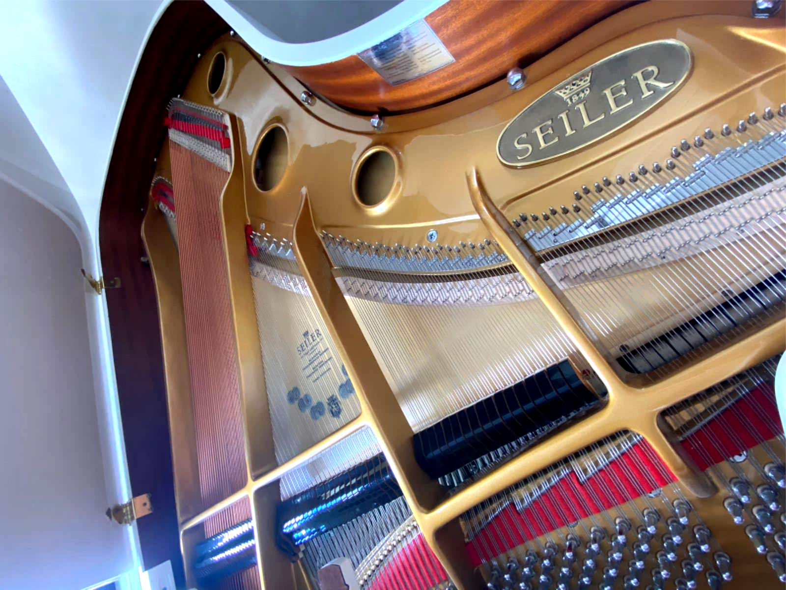Германская марка роялей Seiler (с 1849 года) знаменита прежде всего серией дизайнерских инструментов в отделке экзотическими коричневыми породами дерева: орех, макассар, палисандр, венге и другие.